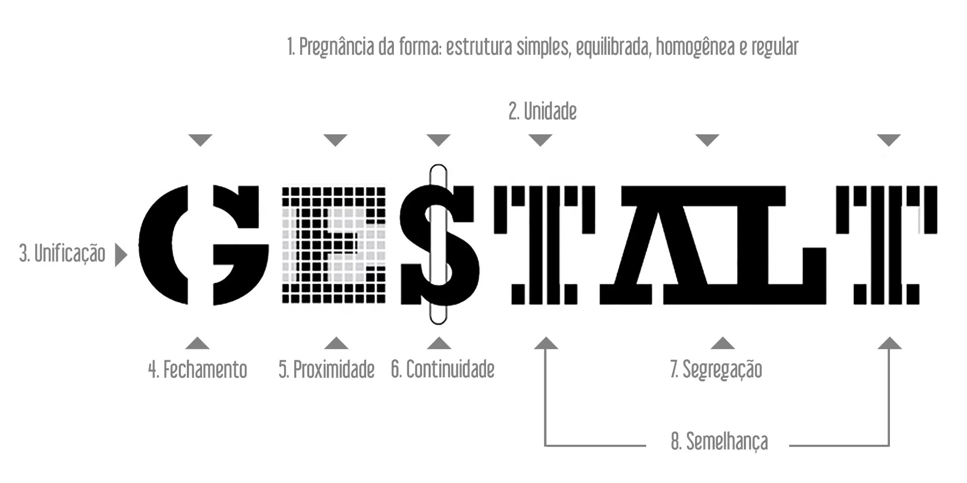 "Gestalt" é uma palavra de origem germânica que significa "forma" ou "figura", e o termo foi adotado pelos psicólogos e teve seu significado ampliado para o "todo unificado", ou seja, a percepção da unidade de vários elementos. Contrapondo o Behaviorismo e a Psicanálise, Gestalt entende o ser humano como um todo complexo e integrado, foca em como percebemos e organizamos informações visuais e conceituais em padrões significativos. Seus princípios são diretrizes essenciais que explicam como nossa mente cria um entendimento coerente e significativo do mundo ao nosso redor.